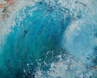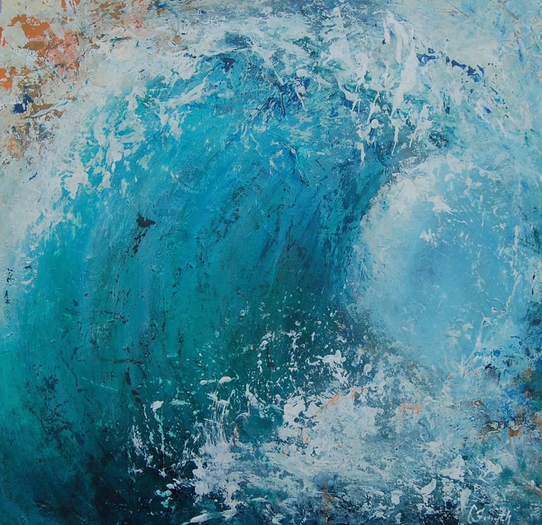 Lots of layers and depth to create this explosive burst of energy as the wave bursts forward, casting varying shades of blues, greens and turquoise as it catches the light.